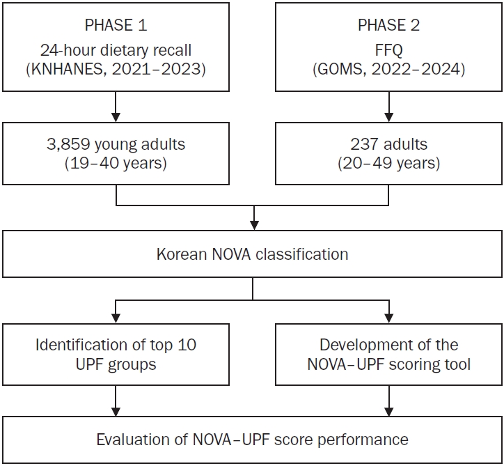 Conclusion This NOVA-based scoring approach may serve as a preliminary tool for assessing UPF intake in Korean young adults. Further refinement and rigorous validation using quantitative dietary assessment methods and more diverse populations are required before broader application.