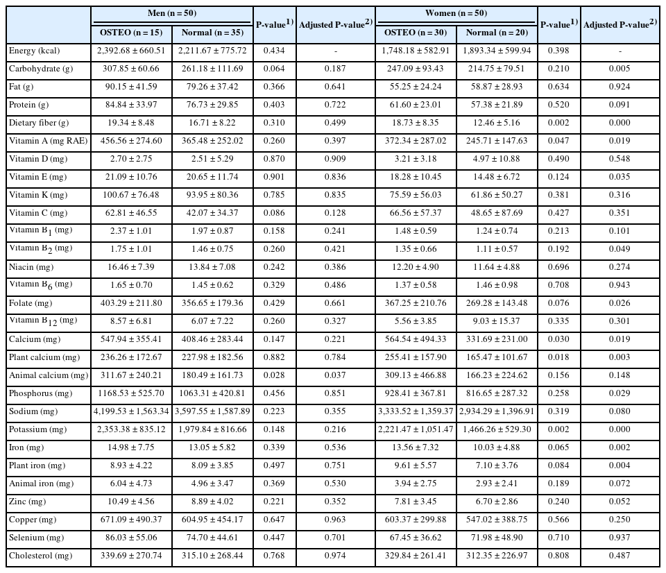 Mean ± SD Energy-adjusted OSTEO: osteopenia & osteoporosis