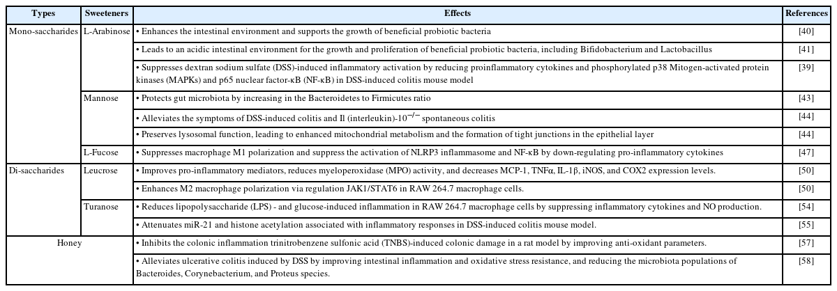 Table 2.Summary of the effects of natural mono- and di-saccharides on inflammatory bowel disease (IBD)