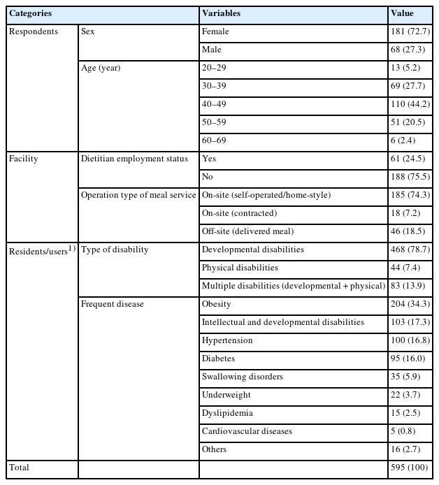 | Facility | Dietitian employment status | Yes | 61 (24.5) |