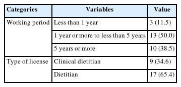 | Type of license | Clinical dietitian | 9 (34.6) |
