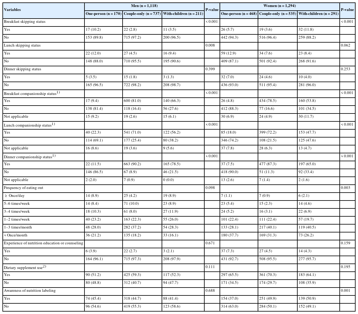 | Breakfast companionship status1) | < 0.001 | < 0.001 | ||||||