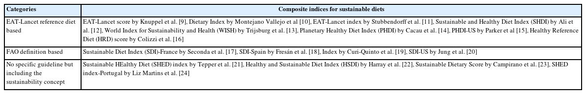 | Categories | Composite indices for sustainable diets |