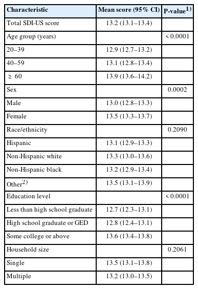 SDI-US, Sustainable Diet Index-US; CI, confidence interval; GED, general equivalency diploma. “Other” includes race/Hispanic origin other than non-Hispanic white, non-Hispanic black, and Hispanic, including multiracial.
