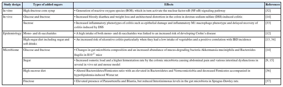 Table 1.Summary of the added sugars on inflammatory bowel disease (IBD)