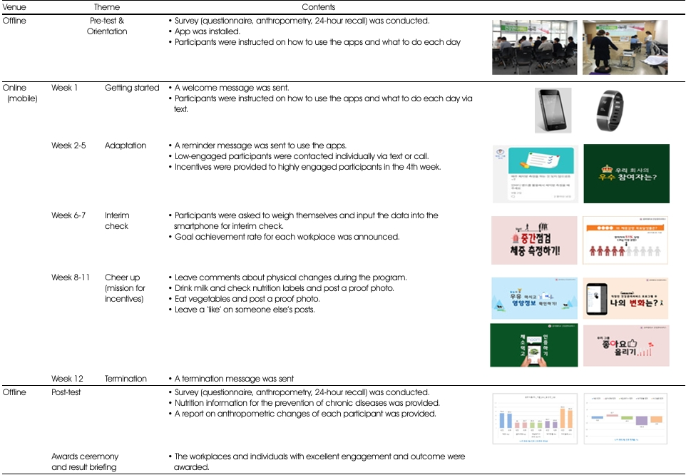| 1:1 chatting with dietary coach | 3.6 ± 0.8 | 3.9 ± 0.7a | 3.4 ± 0.7b | 3.3 ± 0.9b | < 0.001 |