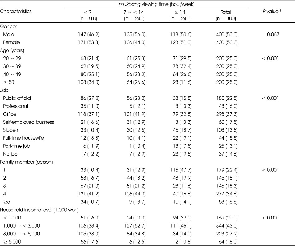A Comparative Study of the Dietary Behavior of Adults Aged 20 and Over according to the Mukbang Viewing Time