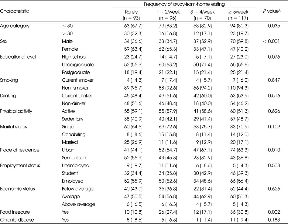 Characteristics of participants according to frequency of away-from-home eating (n = 375)